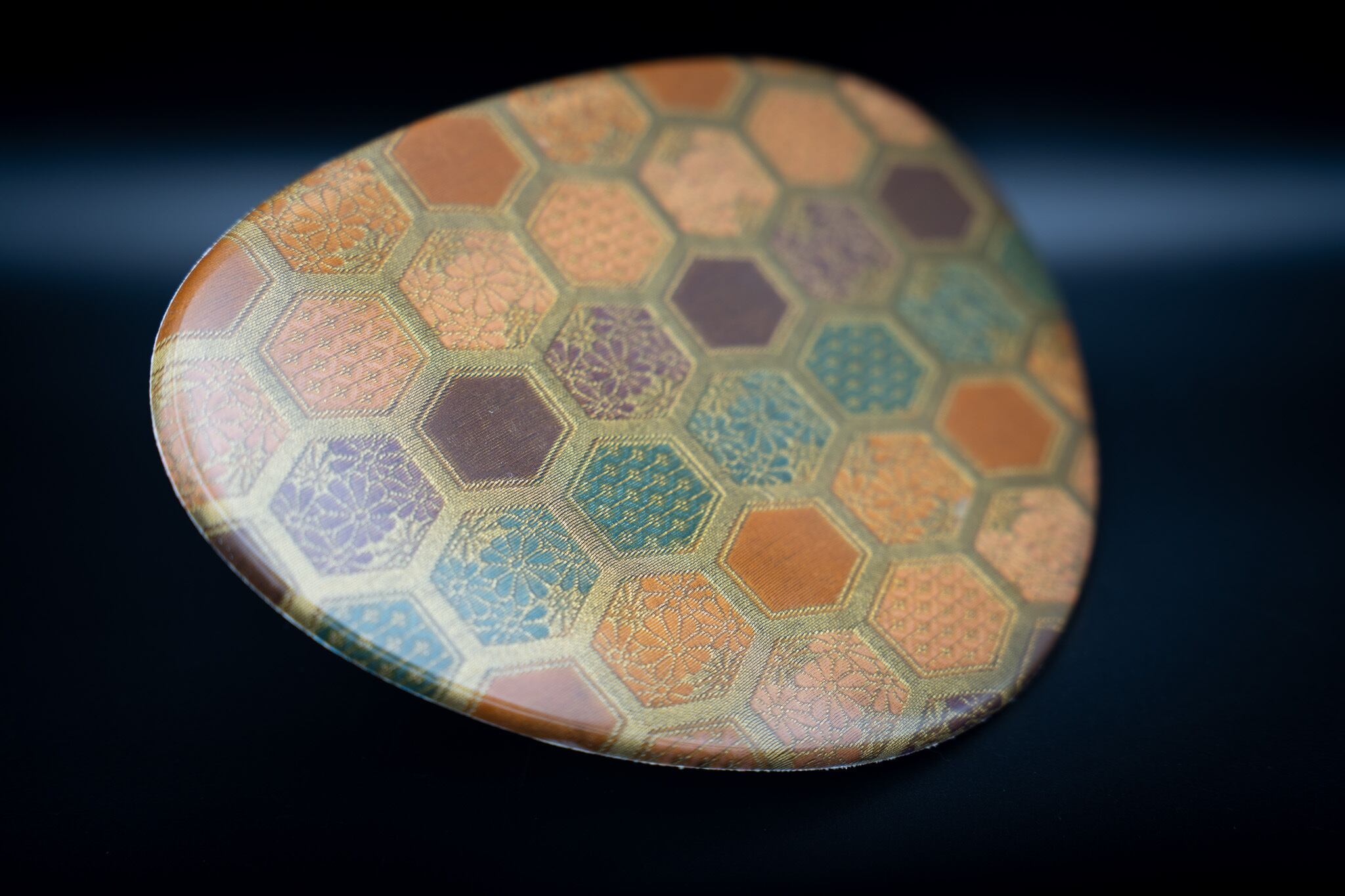 プリントや転写ではなく、本物の織物生地を使用しており、織物生地特有の立体感のある柄と輝きが個性とプレミア感を引き立てます。