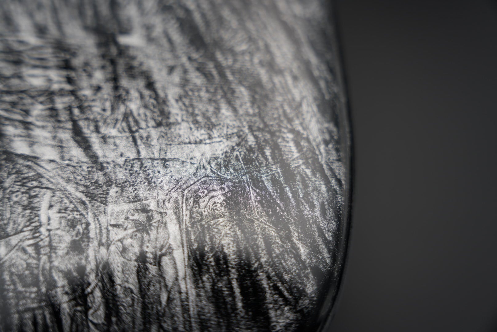 プリントやラッピング等と見た目での違う点は、透明樹脂(クリヤー塗料)の奥に柄が立体的に見え、プリント等では再現出来ない奥行き感・メタリックのギラつき感と高級感があります。